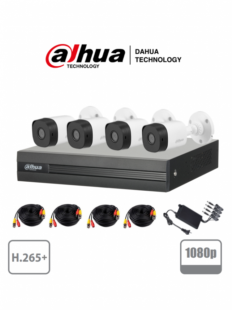 Kit de 4 Canales 1080p Dahua Technology DH-KIT/ XVR1B04/4-B1A21, Policarbonato, 4, H265+, 1080p (2MP)